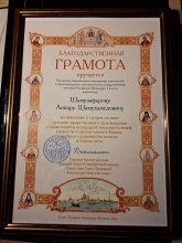 Президент НОПРИЗ А.Ш. Шамузафаров и главный редактор издания «Антология. Исторические города и села России» награждены благодарственные грамотой от Вениамина, епископа Кронштадтского, викария Санкт-Петербургской епархии, наместника Александро-Невской лавры.
