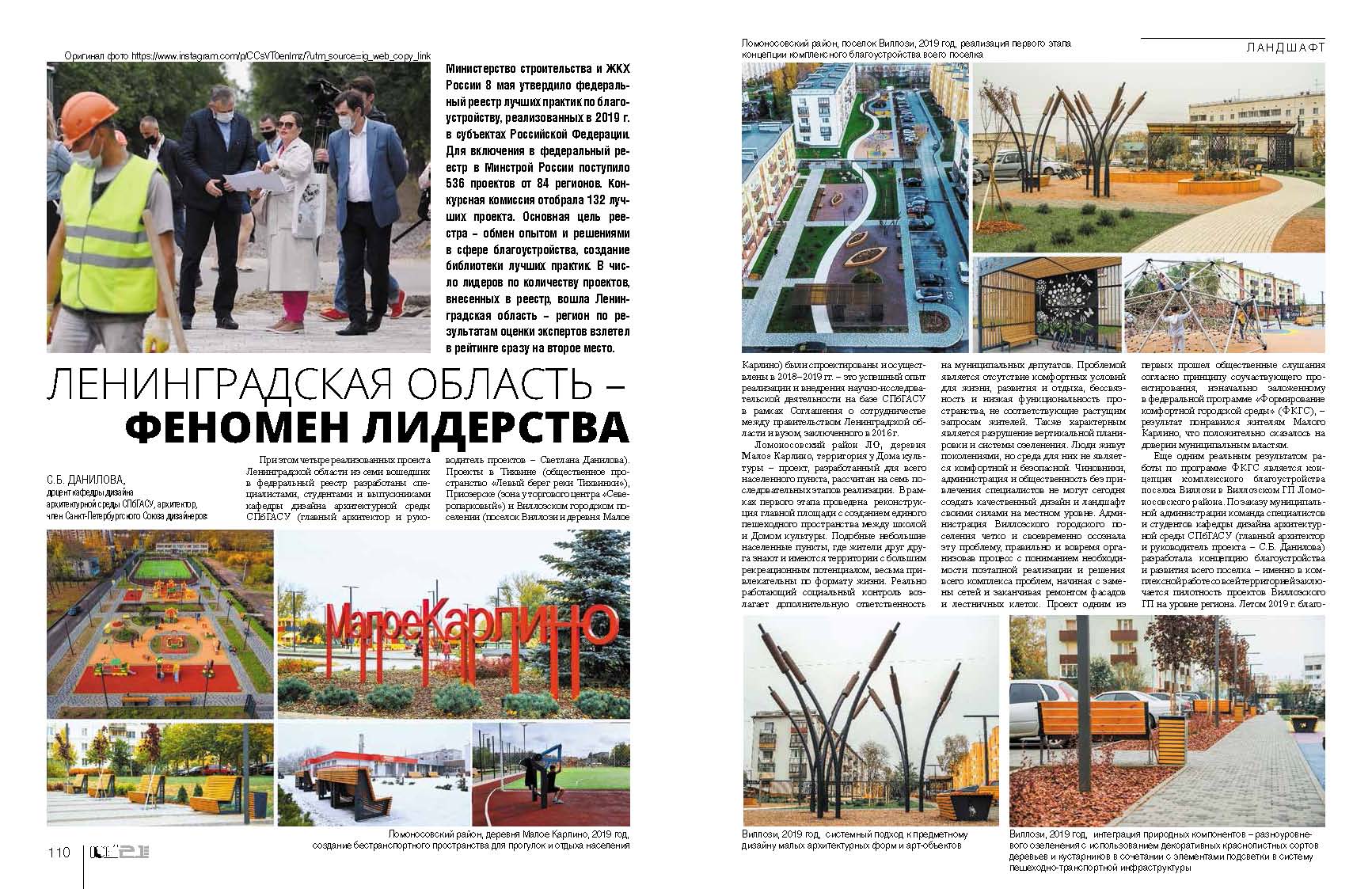 Министерство строительства и ЖКХ России 8 мая утвердило федеральный реестр лучших практик по благоустройству, реализованных в 2019 г. в субъектах Российской Федерации. Для включения в федеральный реестр в Минстрой России поступило 536 проектов от 84 регионов. Конкурсная комиссия отобрала 132 лучших проекта. Основная цель реестра – обмен опытом и решениями в сфере благоустройства, создание библиотеки лучших практик. В число лидеров по количеству проектов, внесенных в реестр, вошла Ленинградская область – регион по результатам оценки экспертов взлетел в рейтинге сразу на второе место.