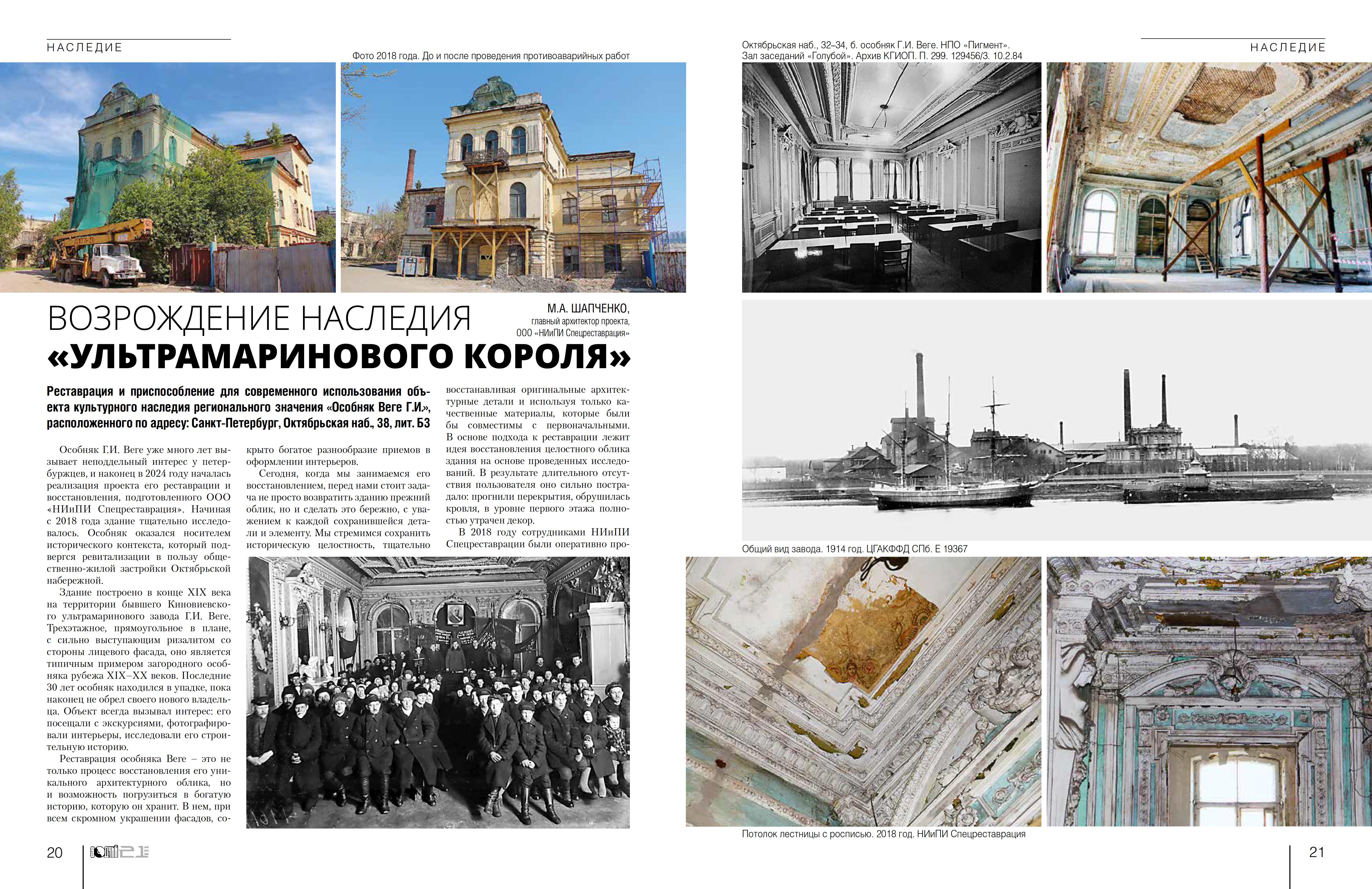 Реставрация и приспособление для современного использования объекта культурного наследия регионального значения «Особняк Веге Г.И.», расположенного по адресу: Санкт-Петербург, Октябрьская наб., 38, лит. Б3