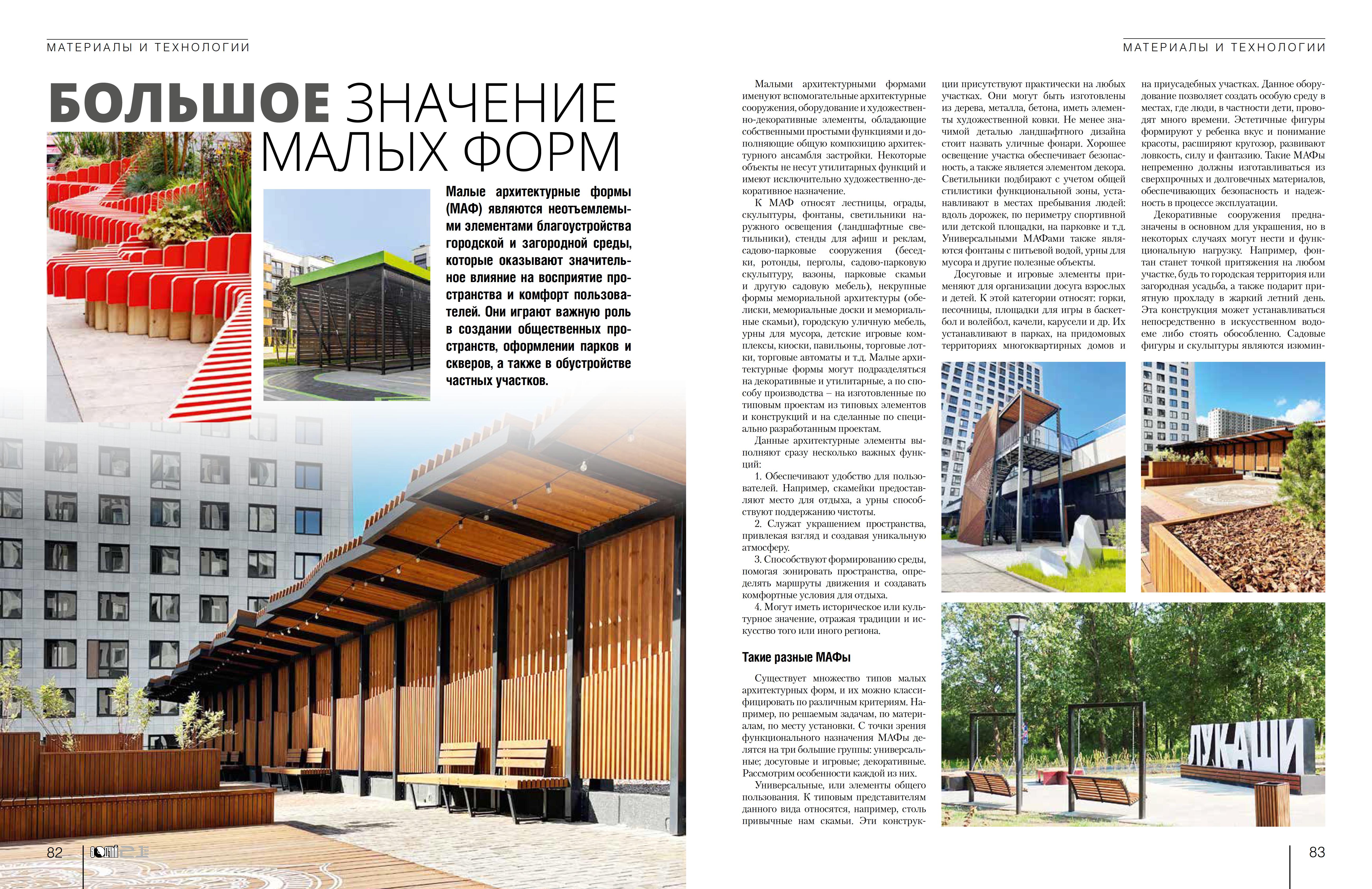 Малые архитектурные формы (МАФ) являются неотъемлемыми элементами благоустройства городской и загородной среды, которые оказывают значительное влияние на восприятие пространства и комфорт пользователей. Они играют важную роль в создании общественных пространств, оформлении парков и скверов, а также в обустройстве частных участков.