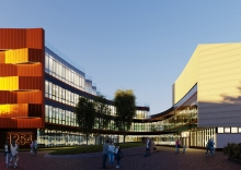 Проект-победитель в номинации социальной инфраструктуры — образовательная школа на 500 мест в г.о. Подольск («ЛАБВА ПРО»). Необычная композиция построена на контрасте двух крыльев, объединенных двусветным пространством центральной рекреации-атриума. Архитектура выстроена на диалоге материалов: фасад одного крыла — вентилируемый, с алюминиевыми кассетами под брашированную медь; другого — с бетонной плиткой под белый кирпич.