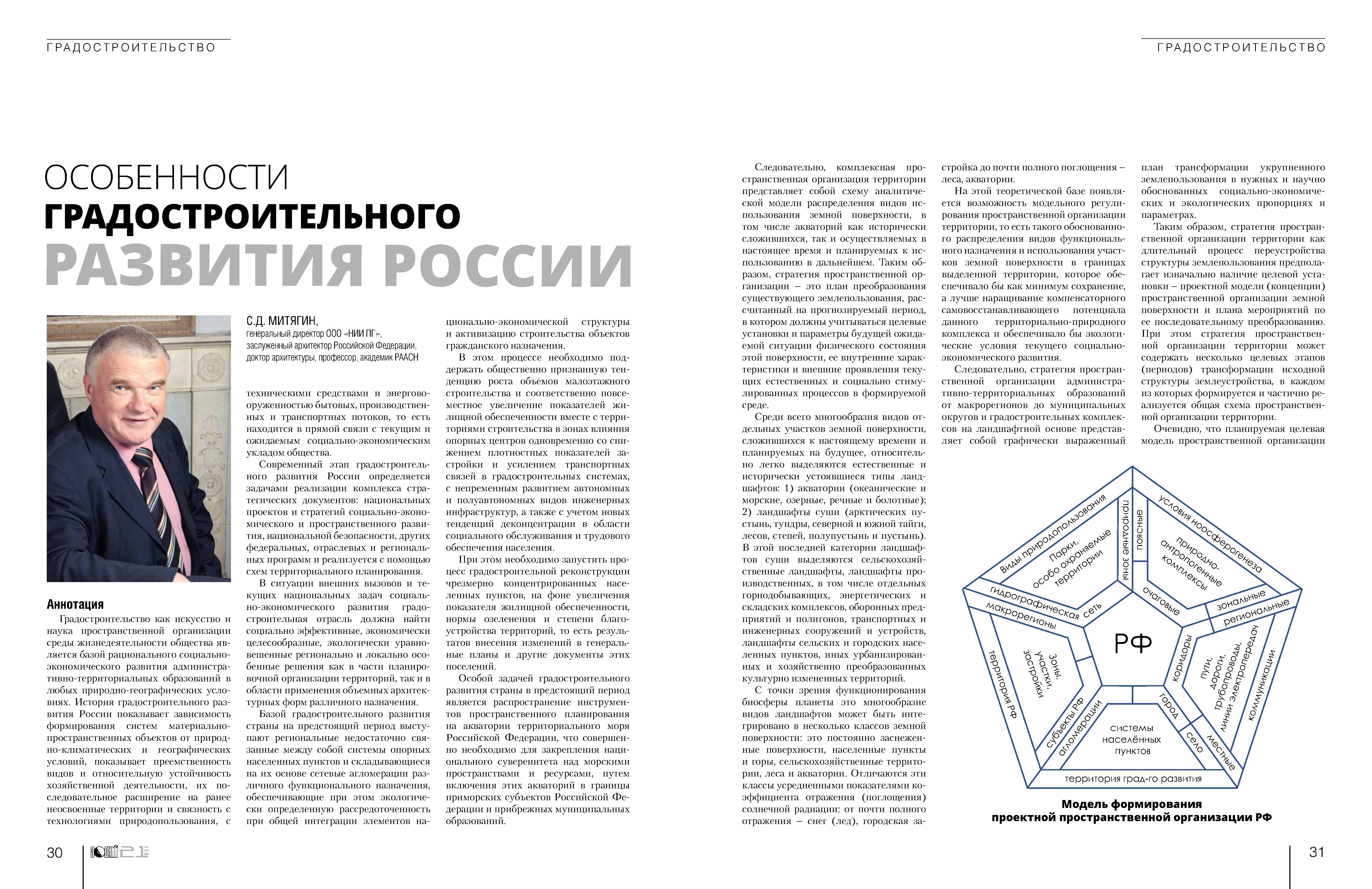 Градостроительство как искусство и наука пространственной организации среды жизнедеятельности общества является базой рационального социально-экономического развития административно-территориальных образований в любых природно-географических условиях. История градостроительного развития России показывает зависимость формирования систем материально-пространственных объектов от природно-климатических и географических условий, показывает преемственность видов и относительную устойчивость хозяйственной деятельности, их последовательное расширение на ранее неосвоенные территории и связность с технологиями природопользования, с техническими средствами и энерговооруженностью бытовых, производственных и транспортных потоков, то есть находится в прямой связи с текущим и ожидаемым социально-экономическим укладом общества.