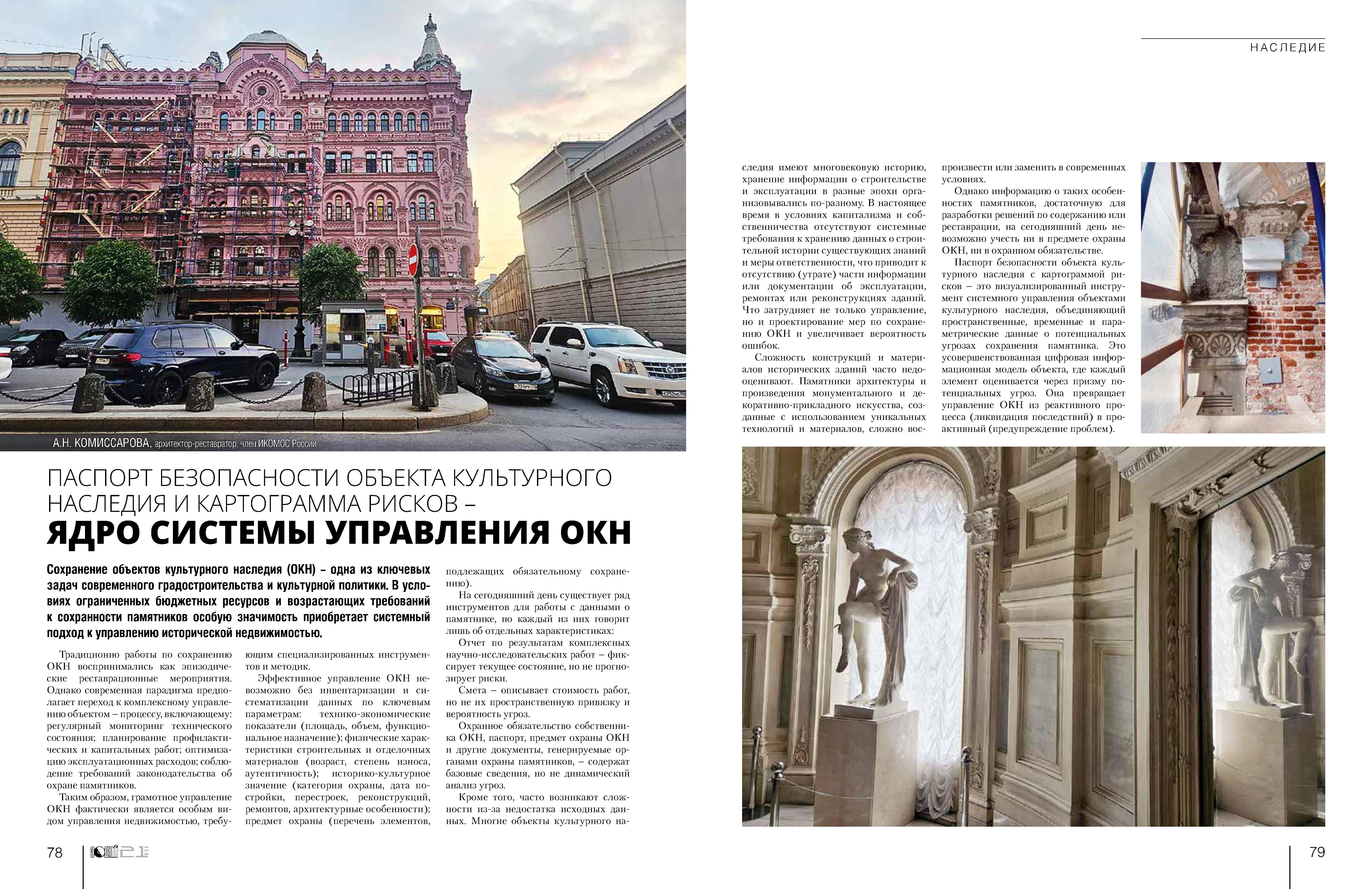 А.Н. Комиссарова Паспорт безопасности объекта культурного наследия и картограмма рисков – ядро системы управления ОКН